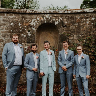 However, if you want to give the eye something interesting to hold on to, put the groomsmen in darker blue suits to make the varying colors jump off the photo. You know you'll typically have the photo where the bridesmaids and groomsmen are all paired up together alternating between couples, and what better way to give that photo some depth than to have the men in a darker color suit next to the pastel, patterned dresses?